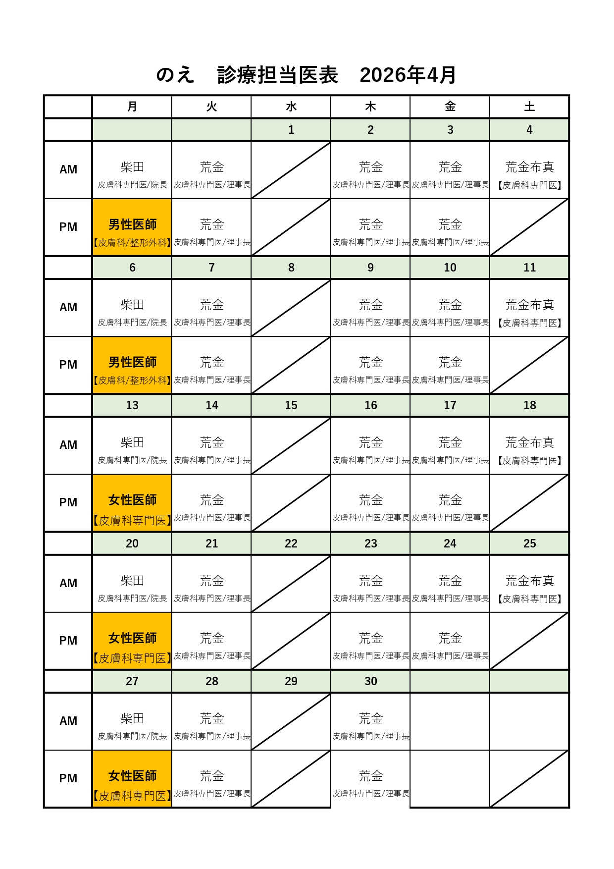 4月も曜日それぞれの担当医が少し変更になりました!!