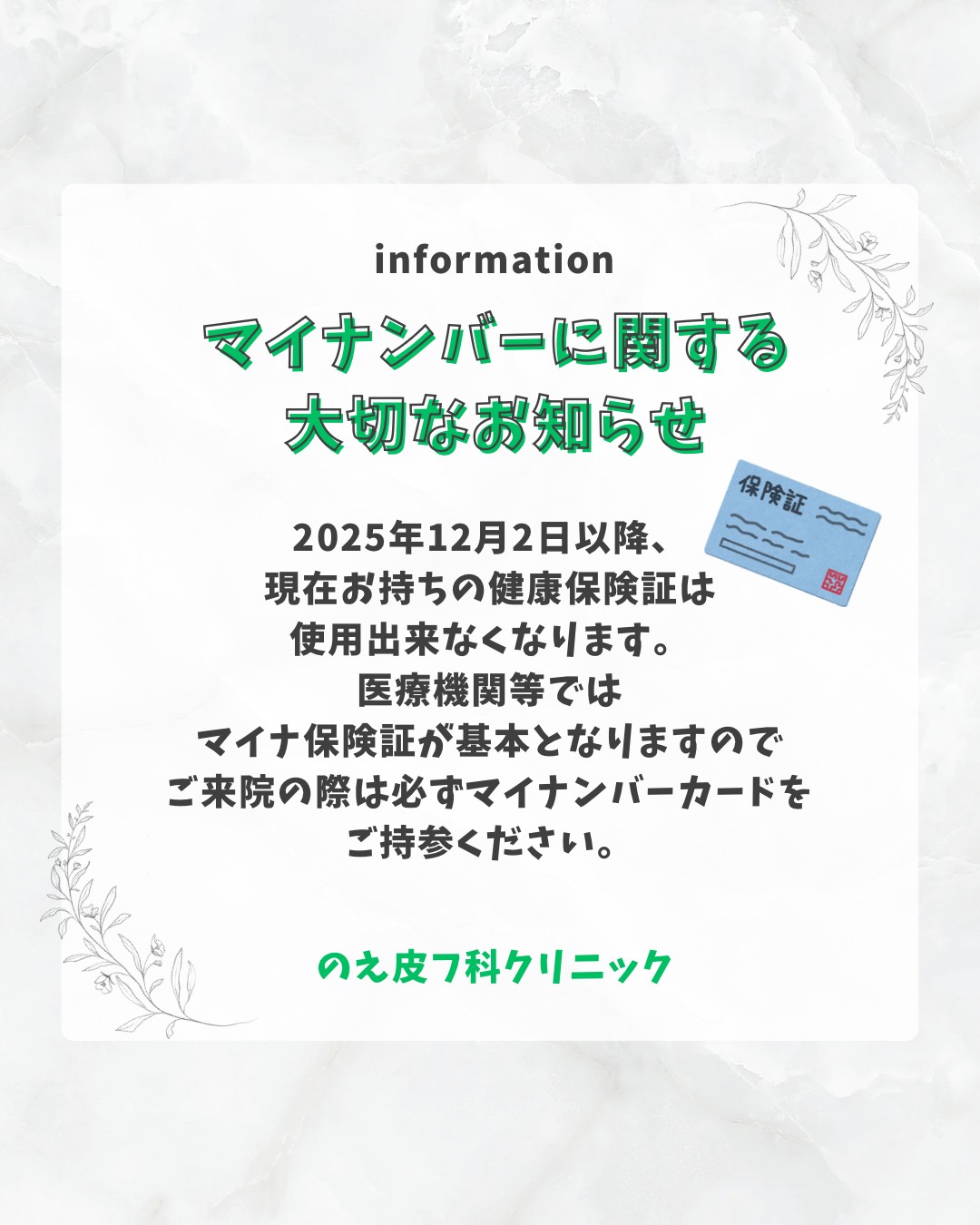 ご来院の際は必ずマイナンバーカードのご持参をお願い致します。
